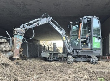Deze rupsgraafmachine is compact en betrouwbaar.
